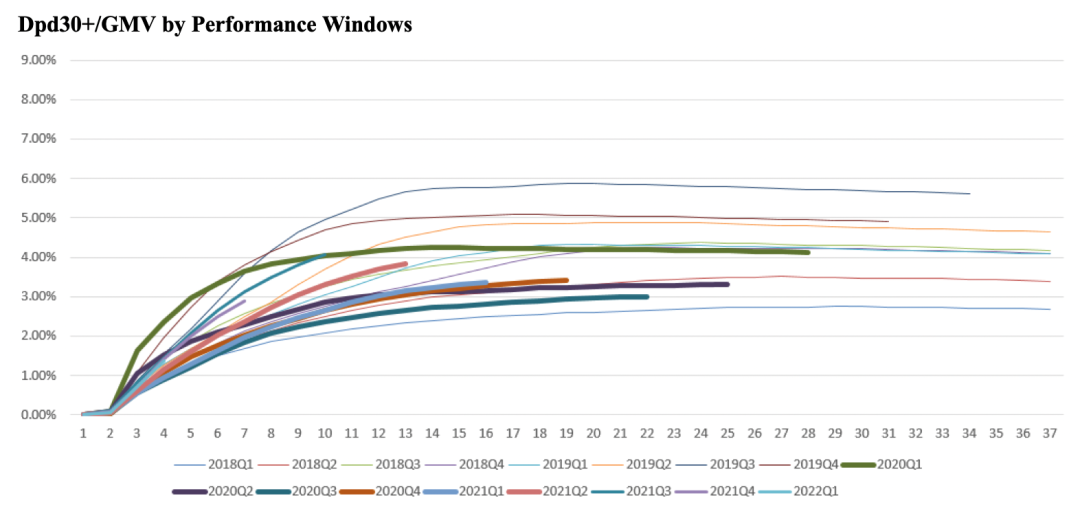 该指标的弊端是作为分子的期末某一阶段逾期金额相对于作为分母的期末总在贷余额,存在滞后表现的情况,因此在当期新增交易规模较大的情况下,会使得逾期率存在因分子滞后而表现“优异”的假象。