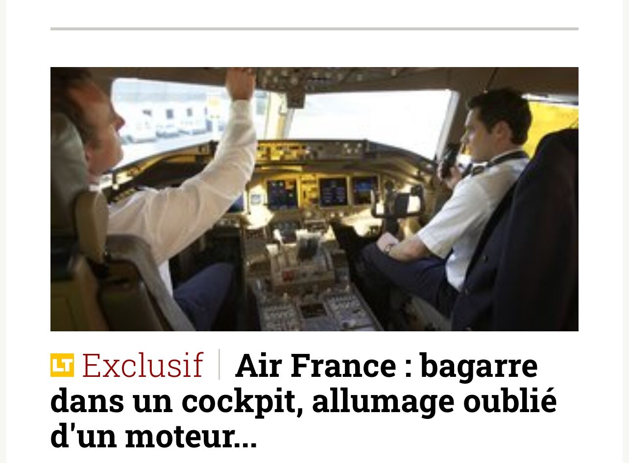 当地时间8月26日,法国媒体《论坛报》(La Tribune)报道,法国航空业发生一起“史无前例的事件”, 飞行途中两名法航飞行员在驾驶舱内打架斗殴。