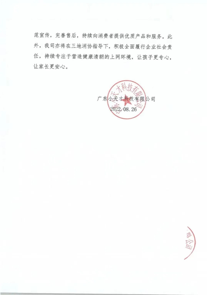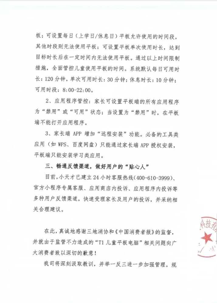 据北京消协官微消息,近日,小天才公司向北京市消费者协会、天津市消费者协会、河北省消费者权益保护委员会提交“相关整改建议的情况汇报”,并发布情况通告。小天才公司表示,公司进行了深入自查,秉持零容忍的态度对应用商店不合规应用程序全部下架。在此基础上,从完善相关内部审核制度流程入手,持续加强应用程序安全管理,坚决落实平台监管责任。