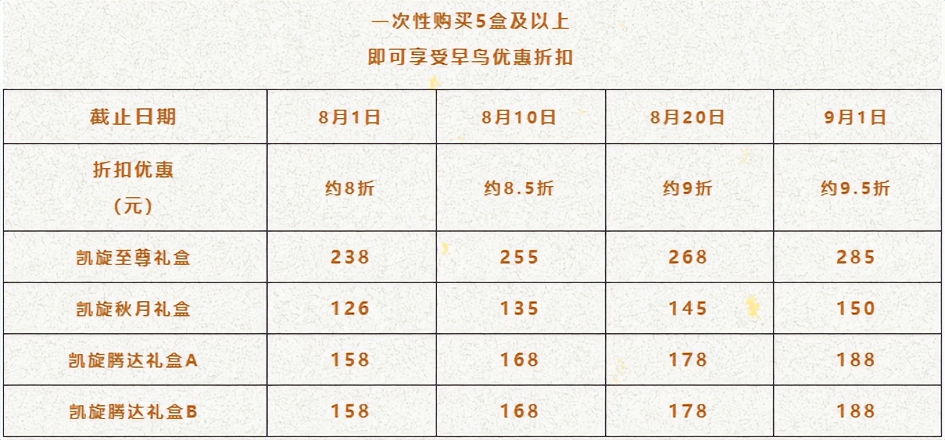 但相较茅台月饼的供不应求,其他酒店的月饼不仅售价不及茅台,同时也出现了滞销的情况。如广州凯旋华美达大酒店在今年共推出了凯旋腾达礼盒A款(4个装)、凯旋腾达礼盒B款(4个装)、凯旋秋月礼盒(6个装)和凯旋至尊礼盒(8个装)4款产品(见图2)。