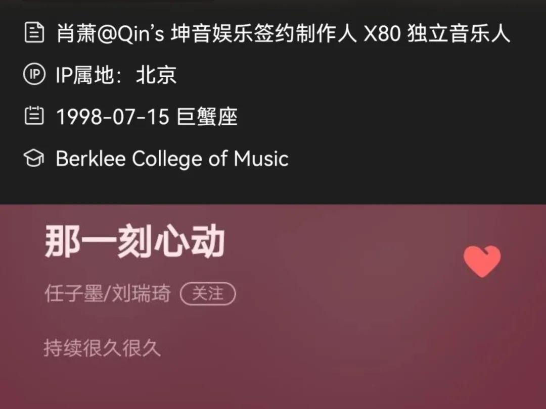 不过,也有像哇唧唧哇娱乐、坤音娱乐这般,给予旗下制作人足够的支持,甚至做到跨司合作,或是允许制作人另有自己的个人厂牌打理。比如坤音娱乐旗下任子墨、肖潇均有“另起炉灶”的个人厂牌,任子墨也有自己名下的出圈作品《那一刻心动》在抖音爆红。