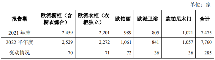 欧派家居在今年上半年也增加了全线品牌的门店数量,以满足销售需求。今年上半年公司新开285家门店,其中欧派橱柜新开门店70家、欧派衣柜新开门店71家。
