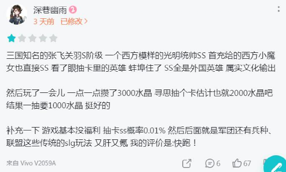 然而游戏在体验上的问题也正是来源于这些强行嫁接上去的新元素。比如新加入的中国风英雄与游戏原本的英雄体系割裂。关羽等英雄由于是系统赠送星级较低,而游戏原本的高级英雄却是一些无IP的“路人甲”角色,自然引起玩家不满。