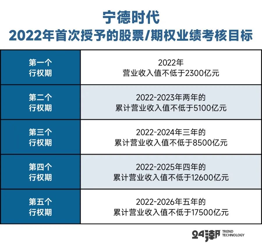 据24潮统计,近五年间宁德时代股权激励数量合计约为6472.13万股(含490.31万股股票期权)。笔者发现,宁德时代这五年的激励计划的业绩考核目标均为营业收入,而营业收入这个指标相对于净利润等指标而言是相对较容易完成的,这可能更有利于管理层达成目标。