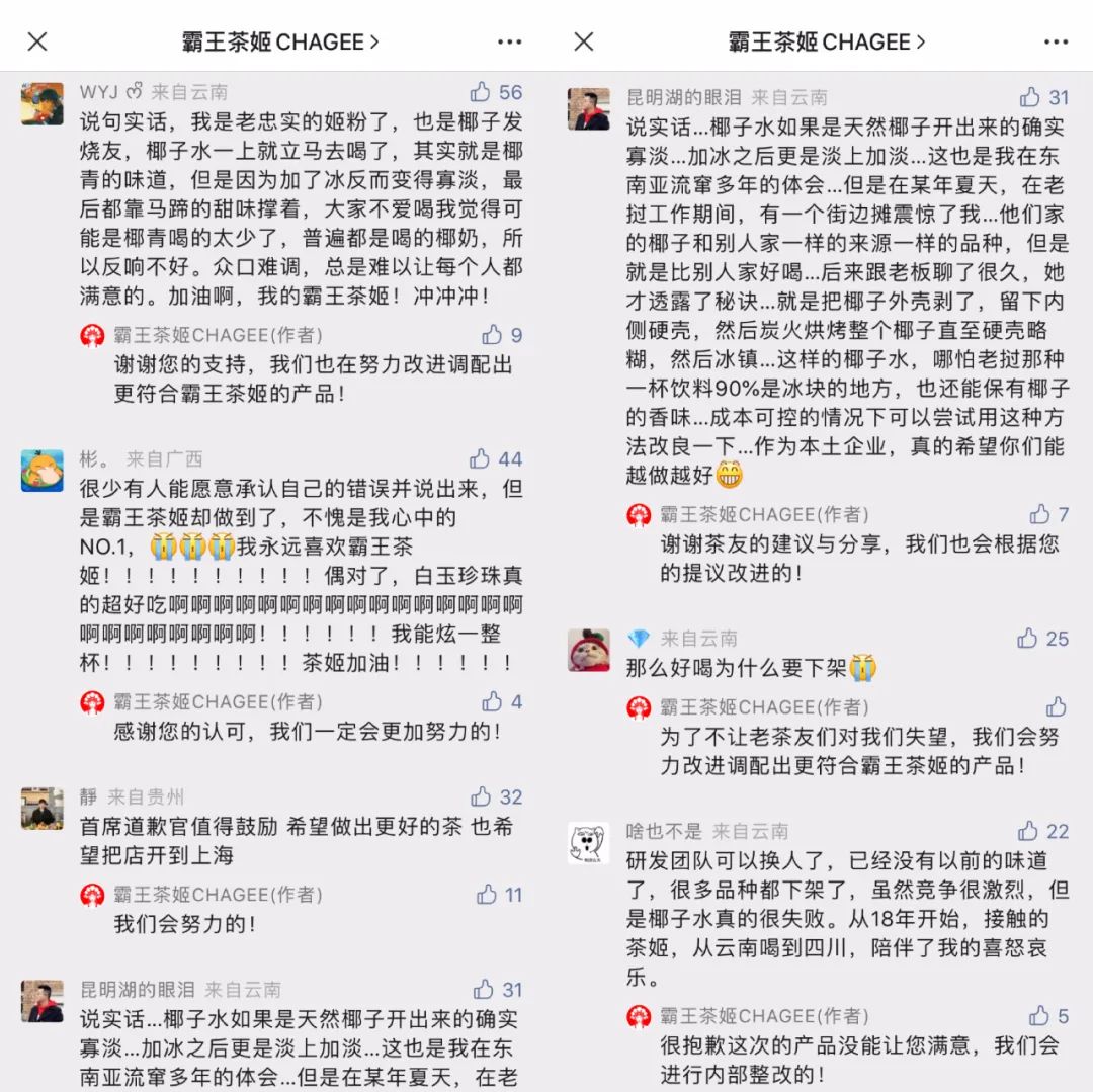 霸王茶姬此番“放下面子”的举动,足见其对消费者产品体验的重视程度。而也正是这种坦诚,引发了粉丝甚至路人的拍手称赞,对品牌心生好感。