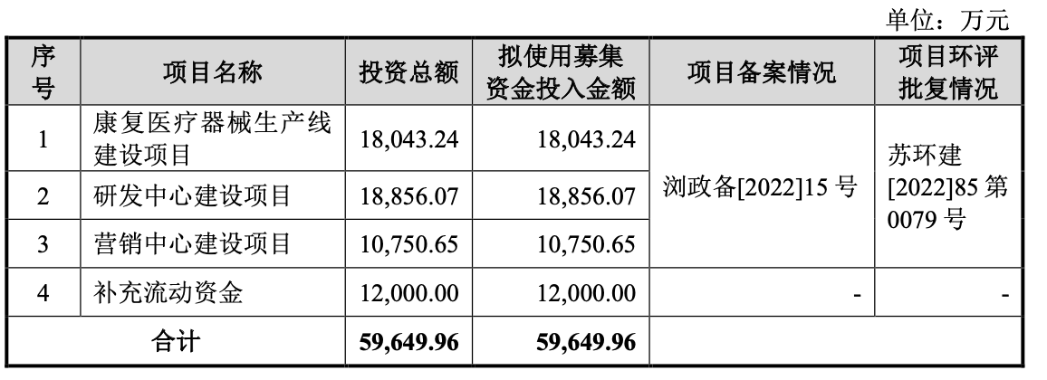 但募投项目耐人寻味。例如第一个项目看似扩产,但招股书显示为“通过引进数字化车间及智能化仓储系统,提升公司对于临床康复需求旺盛的主要产品的生产及库存管理能力,提高对客户需求响应速度,优化公司产品结构”,但即便扩产,公司产品的产能及利用率情况并未披露,是疏漏还是另有原因?