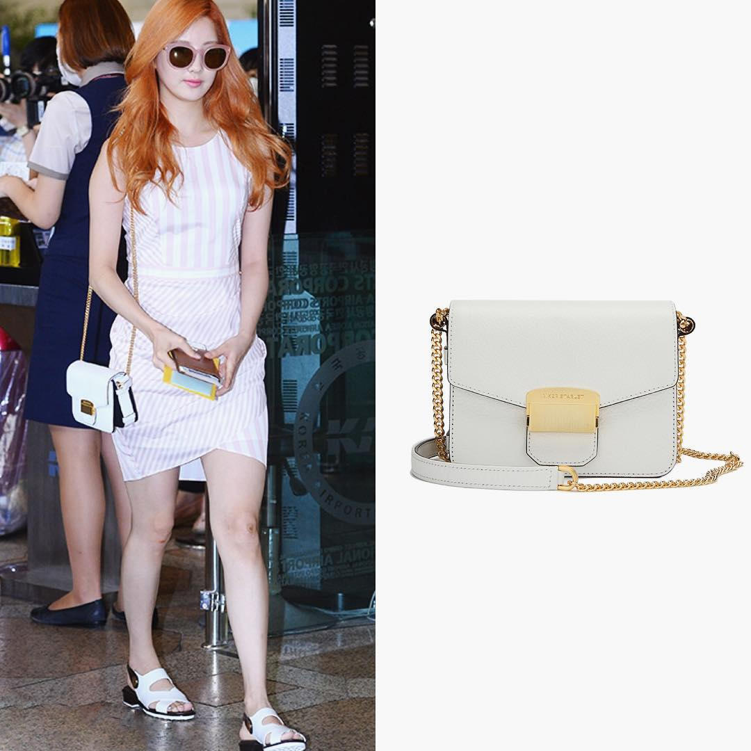 背它的明星数不胜数,基本上只要是在韩国看到这种包包搭扣的就是他家没错。 随便发几张出来看看,河智苑。