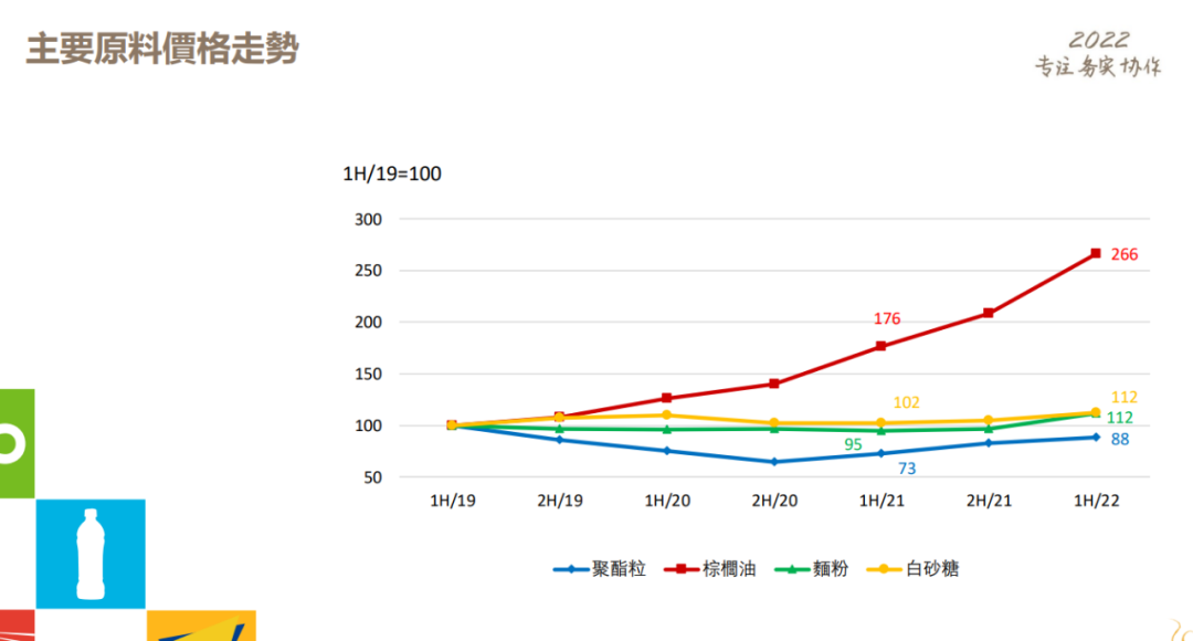 康师傅原材料价格走势,图/康师傅2022 年上半年业绩演示材料