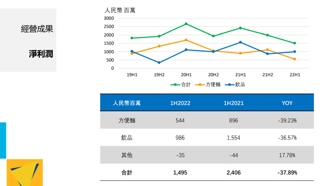 康师傅净利润情况,图/康师傅2022 年上半年业绩演示材料