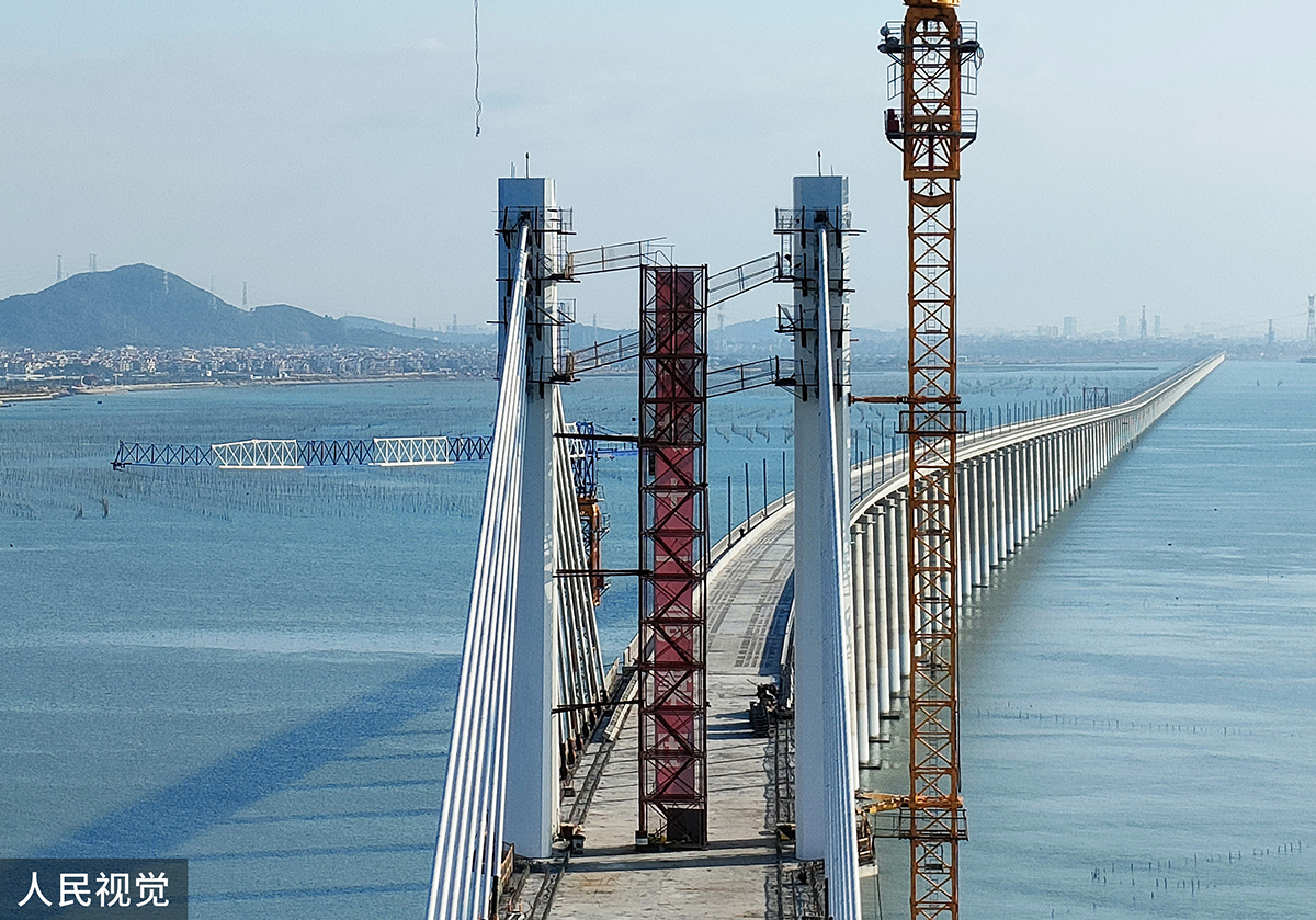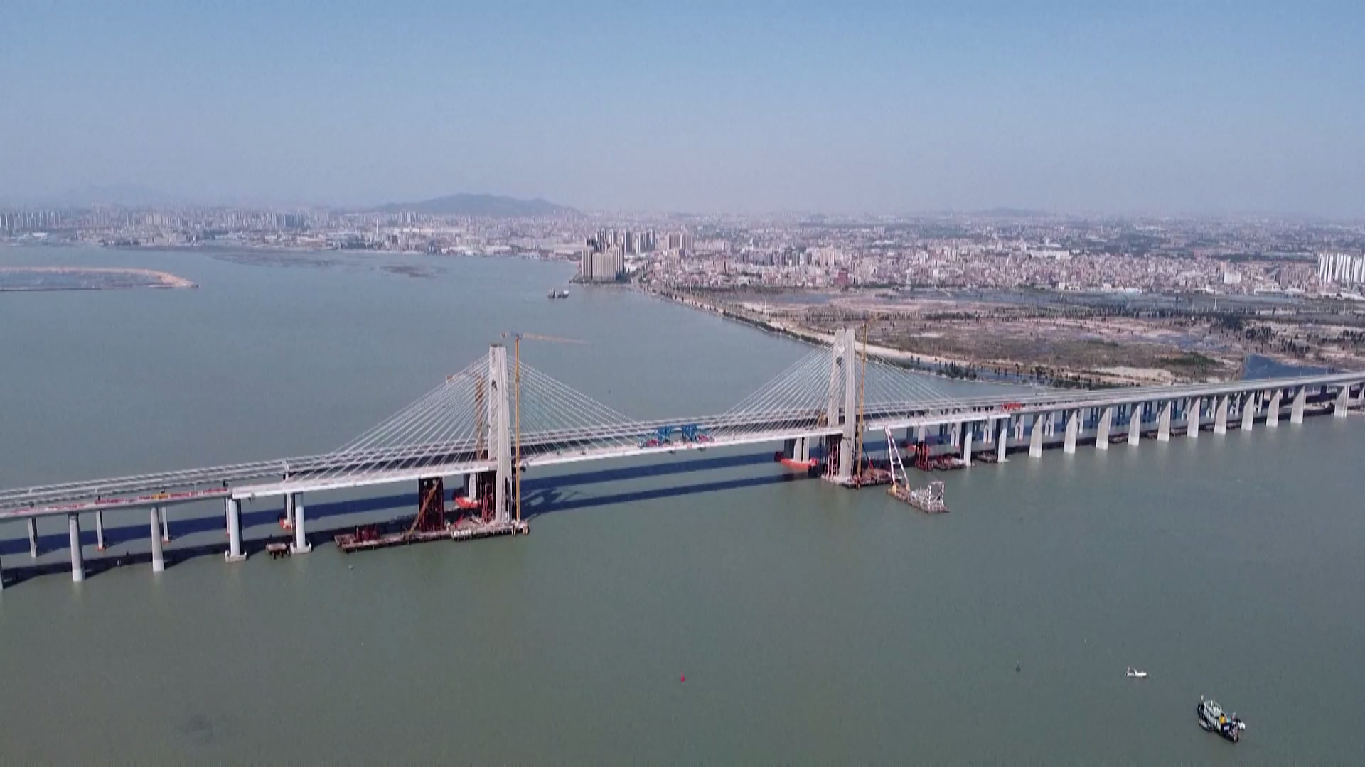 安海湾跨海特大桥也位于泉州市境内,连接辖内晋江市、南安市,全长9.46公里。其中跨海区段全长1.56公里,大桥主跨300米,跨越安海湾2000吨级主航道,是全线关键控制性工程之一。