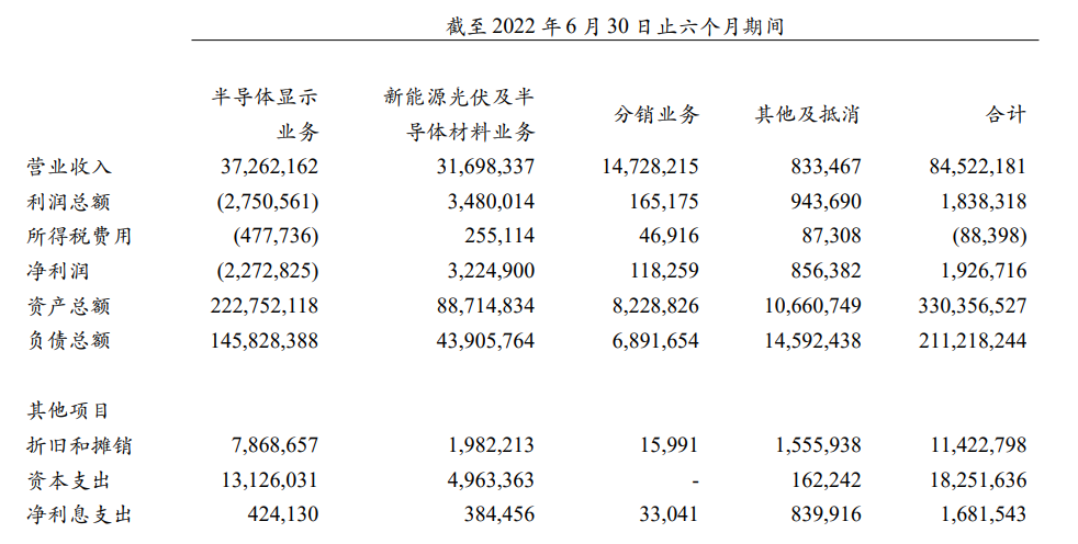 如今二季度尘埃落定,8月26日,TCL科技发布了2022年中期财务报告: