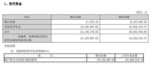 截至6月30日,*ST腾信的货币资金有2312.90万元,仅占流动资产的2.17%;其中,受限制的货币资金为2314.07万元,是财产保全司法部门冻结款项。不受限的银行存款只有1.17万元。