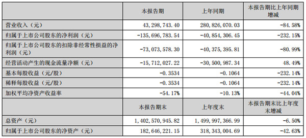 近日,*ST腾信披露了《2022年半年度报告》,其中显示,上半年实现的营业收入为0.43亿元,而去年同期营业收入有2.81亿元,同比减少了2.38亿元,下降84.58%;不但如此,归属于上市公司股东的净利润亏损扩大,由上年同期的-0.41亿元扩大到本期的-1.36亿元,亏损同比扩大了232.15%;经营活动产生的现金流则净流出0.16亿元。