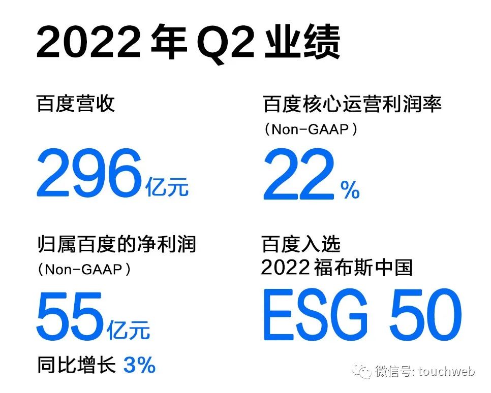 百度2022年第二季度营收296.47亿元(约44.3亿美元)。