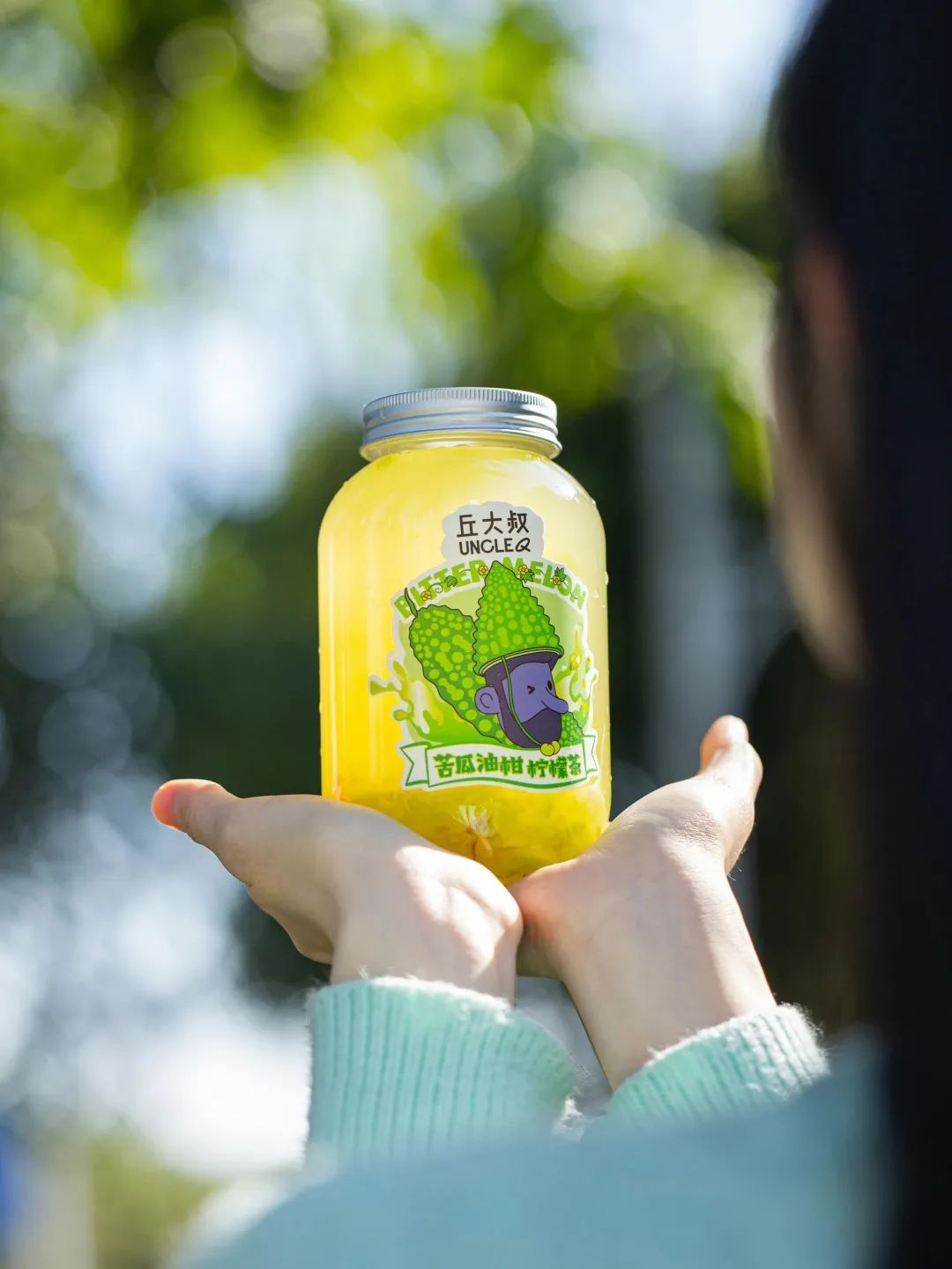 如年初的时候,丘大叔就推出过苦瓜油柑柠檬茶,原料采用了大顶苦瓜和潮汕甜种油柑,并将其与香水柠檬相结合;在520期间还推出了以当季荔枝鲜果为原料制成的高颜值紫荔柠檬茶、紫荔香槟新品。