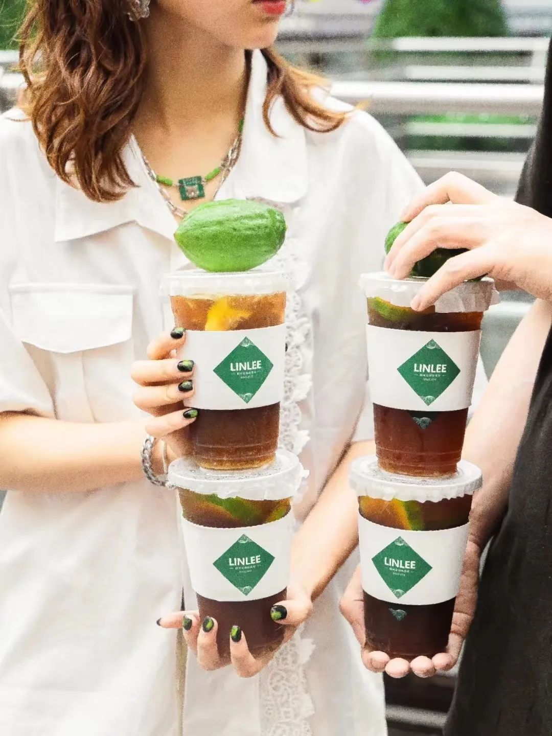 LINLEE更是选择将咖啡与柠檬茶相结合,推出了打工场景适用的咖啡手打柠檬茶,以及与华熙生物联合推出的加入了水肌泉玻尿酸水的黄皮快乐水等等。
