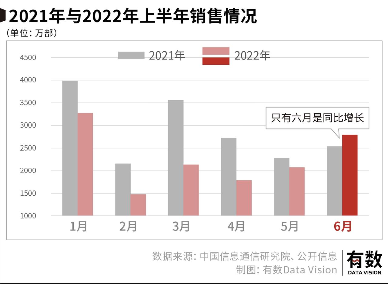 与之相对的,是今年上半年国内手机出货量为1.36亿部,同比下降21.7%。