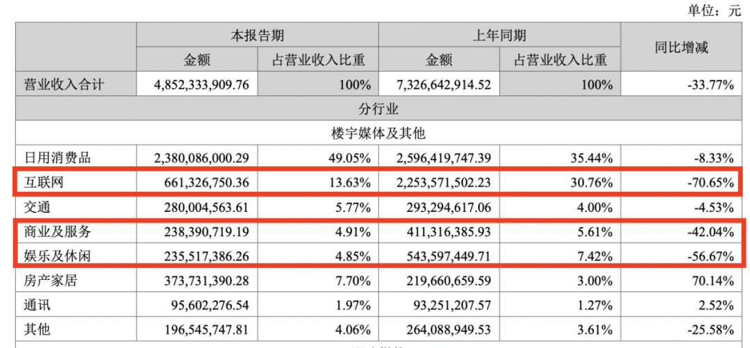 可以看出,2021H1的三个“金主爸爸”——互联网、商业及服务、娱乐及休闲行业在今年都没再疯狂“撒钱”了,特别是互联网这块,其贡献的营收由2021H1的22.5亿元直接降至6.6亿元,缩水70%以上。再仔细想想之前在这块狂轰乱炸的“教培”机构还剩下哪些?想想互联网大厂过去一年又为社会“输送”了多少人才,也就明白了为什么互联网行业贡献的营收缩水这么严重。