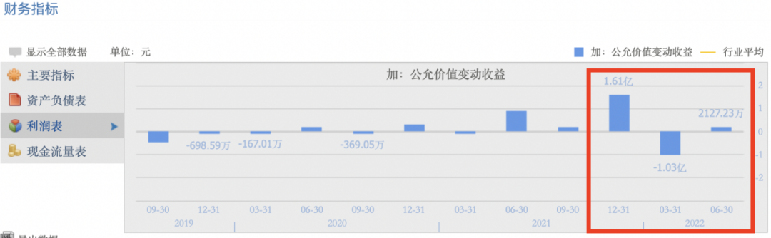 2022H1其公允价值变动损益(可以把这个科目的业务简单点理解为就是买一些股票、基金等随时准备出售的金融资产)为-0.82亿元,而2021年这一数值为2.63亿元,也就是说半年亏了3.4个亿,分季度来看,Q1亏了1.03亿,Q2回血赚了0.22亿。