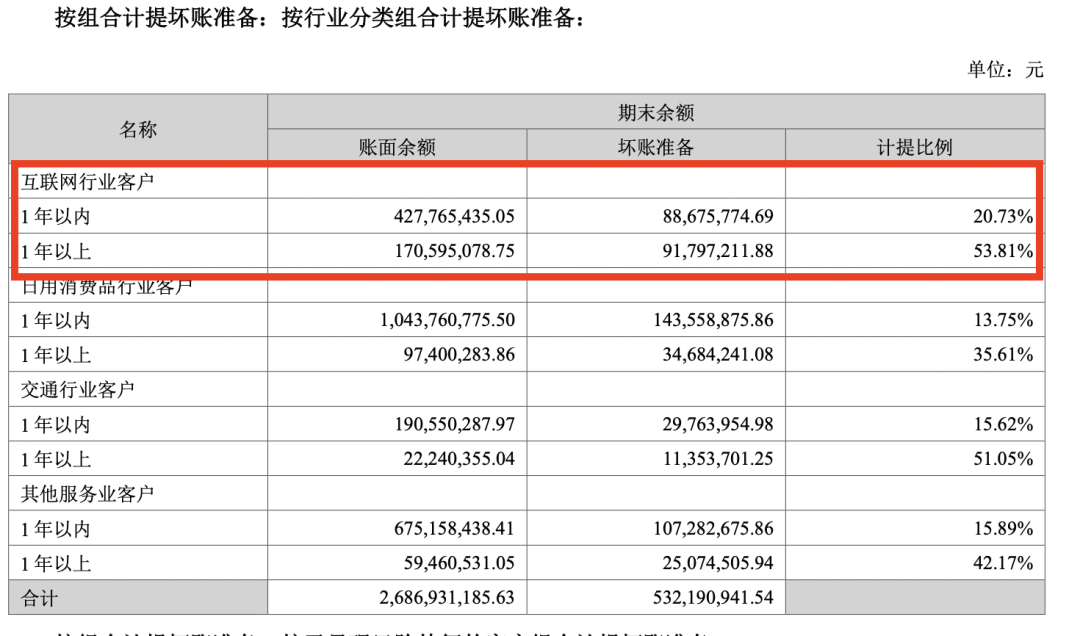 该科目金额大幅增加的主要原因是对应收账款计提了大量的坏账准备,特别是互联网行业,计提的坏账准备比例明显高于其他行业。同时受制于应收基数也较大,坏账准备金额也明显高于其他行业,成为净利的“减分”项。
