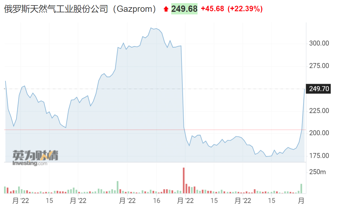 受此消息影响,俄气8月31日的股价一度大涨逾30%,创下2008年9月以来最大涨幅。