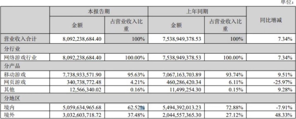 海外业务方面,今年上半年三七互娱实现境外营业收入30.33亿元,同比增长48.33%,创下历史新高。