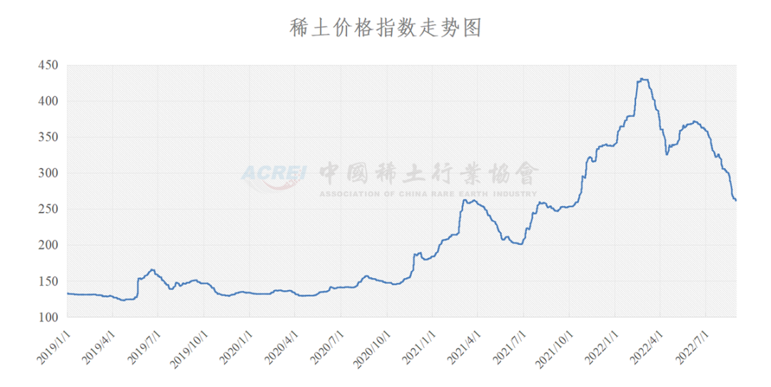 中国稀土行业协会数据显示,8月31日,稀土价格指数为261.3,较前一日下降1.4点。