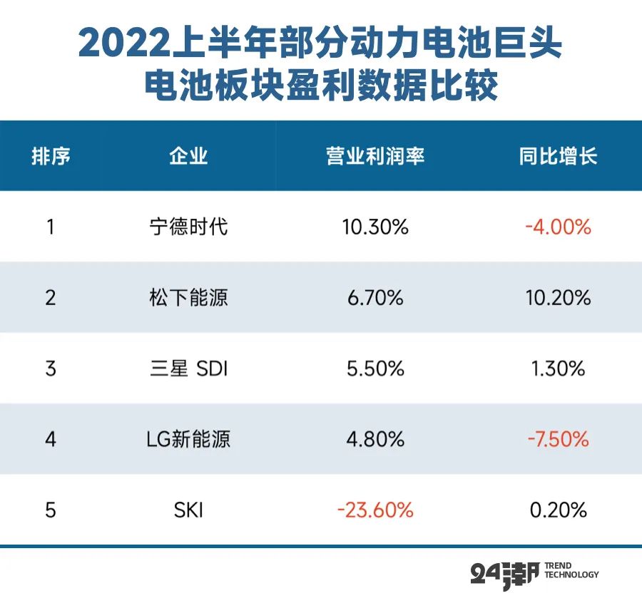 尽管如此,宁德时代动力电池业务的盈利能力较主要竞争对手仍保持较大的领先优势,详见下表:
