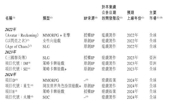 游戏于今年下半年重点布局的产品为Avatar:Reckoning(暂译《阿凡达:重返潘多拉》)和《以闪亮之名》。前者背靠全球知名电影IP《阿凡达》,与腾讯合作进行全球发行,是一款主打全球市场的高画质游戏产品。后者同样是一款以高画质作为主要卖点的游戏,但主打女性向时尚换装细分市场,游戏已于7月率先在海外上线测试并预计于下半年在大陆地区发行。此外,Age of Chaos是祖龙继《鸿图之下》后推出的第二款SLG产品,游戏同样以高画质为卖点,选择西方魔幻题材美式卡通风格,主攻欧美市场。
