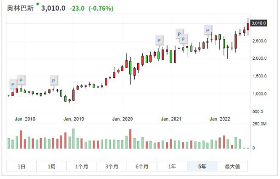 近五年来,奥林巴斯的股价,上涨了3倍。