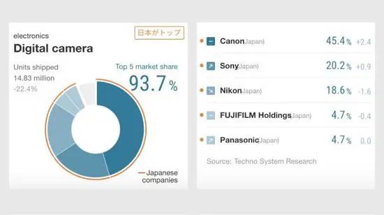 2019年全球数码相机的市场份额排名,奥林巴斯跌出前五