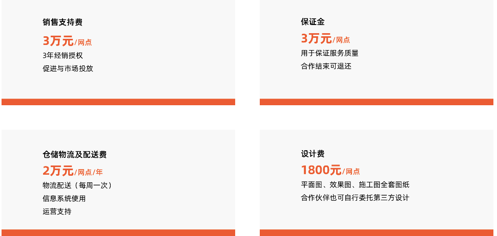 从舌尖科技官网可以看到,想要成为一名加盟商,首先需要3万元/网点的销售支持费、3万元/网点的保证金、2万元/网点/年的仓储物流及配送费、1800元/网点的设计费,足足有8万元。