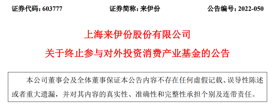 作为主要LP的来伊份选择终止出资,意味着该消费产业基金大概率告吹了。