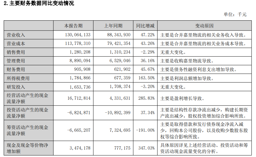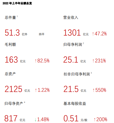 一、二季度营收分别为629.84亿元、670.80亿元,同比增长47.78%、46.71%。