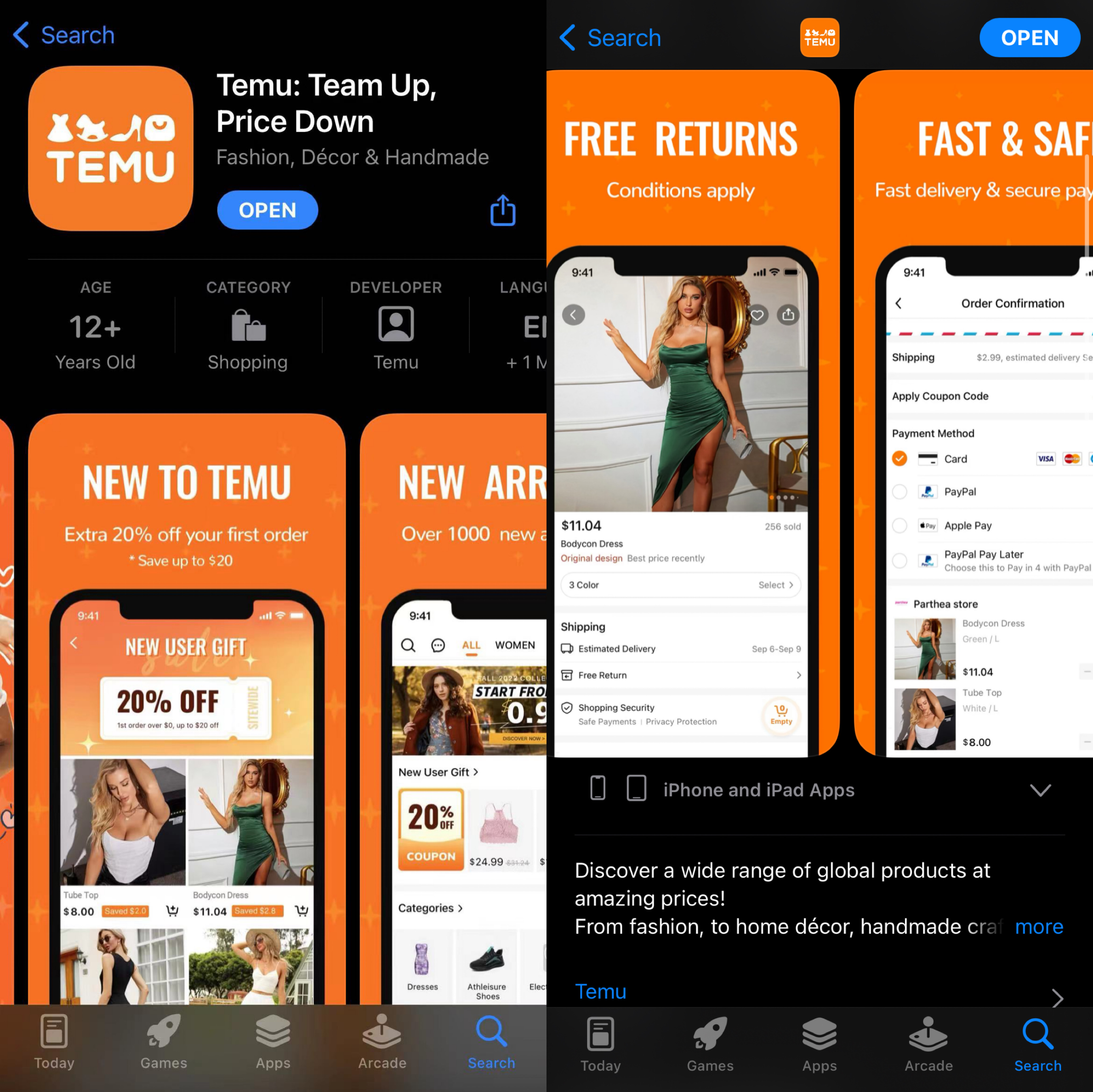 Temu PC端和App端版本都已经上线,iOS版本的APP大小为43.2MB。