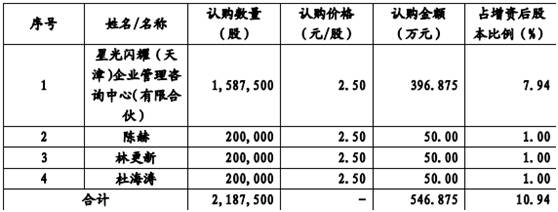 2 月 15 日,股份公司召开第一届董事会第五次会议通过,公司注册资本由 1781.25 万元增加至 2000.00 万元。值得一提的是,新股东林更新、陈赫、杜海涛都以货币方式认购 20万股,发行价格为 2.50 元/股,持有股份占公司总股本的1%。其中,陈赫在今年1月份还与分享时代合资设立了全新子公司动霸科技。