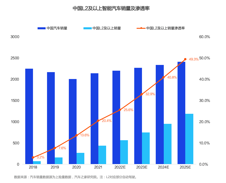 据汽车之家研究院预测,到2025年,中国L2及以上智能汽车销量破千万辆,对应智能汽车渗透率达49.3%。都说新能源加速渗透是产业竞争的上半场,智能化技术的突破是竞争的下半场。随着主机厂在智能化领域竞争的加剧,背后提供技术支持的合作伙伴又何尝不是一场激烈的“暗战”。