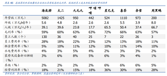 而对标星巴克的奈雪却把自己活成了九毛九。人效上,奶茶要明显低于咖啡,星巴克的人效甚至和周黑鸭相差无几,由于现制欧包的存在,奈雪的人效要远低于喜茶,甚至不如海底捞。茶饮企业的经营利润率一般是要高于餐饮企业的,但是这在奈雪身上并没有看见,比起星巴克36%,喜茶30%的经营利润率,奈雪仅有19%,与海底捞、呷哺呷哺等火锅店是一个梯队。