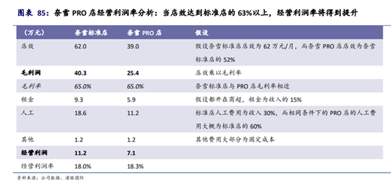 根据浦银国际的分析,奈雪调整后的奈雪Pro店,只是因为面积的缩小,减少了租金和人工费用,在毛利率方面并没有变化,而经营利润率略有提高,但效果并不明显。