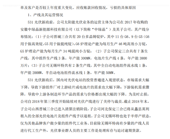 但收购不到1年,由安徽中绿晶及其子公司运作的光伏业务便因经营不善被锦富技术大幅缩减,与凤台县政府签订的项目也被放弃推进,理由是受国内2018年发布的“531”光伏政策等因素影响。