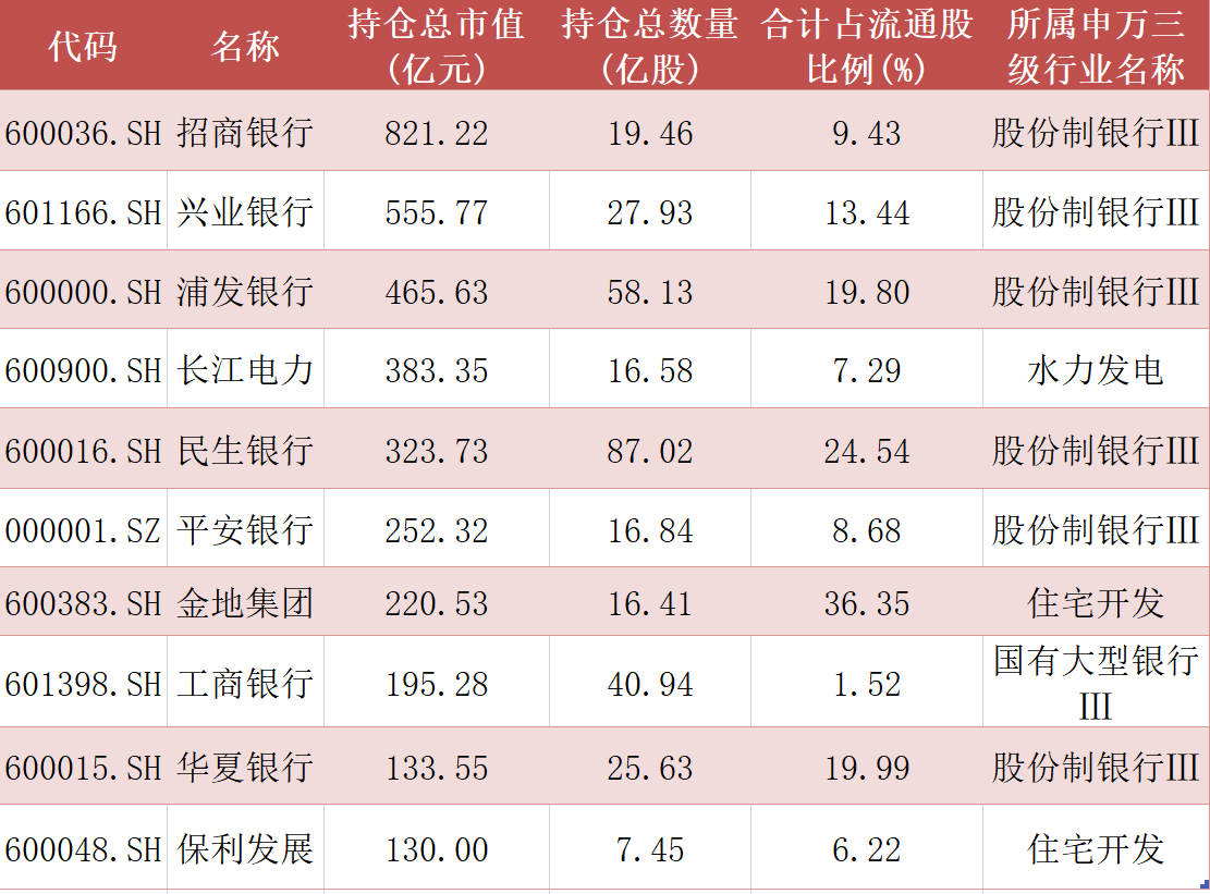 其中,从个股持仓市值来看,险资仍是银行股的长期拥护者。