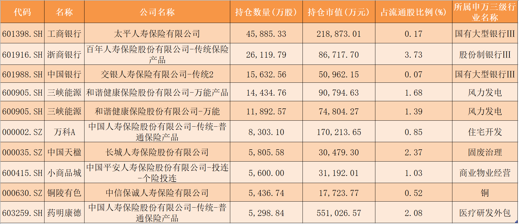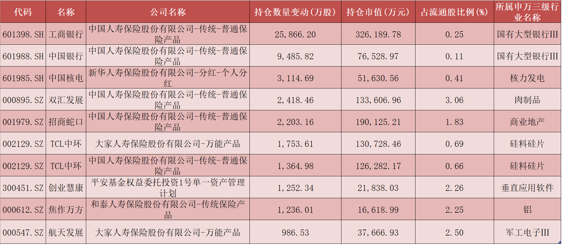 此外,大家人寿还增持了986.53万股航天发展(000547.SZ),和泰人寿增持了1236.01万股焦作万方(000612.SZ),新华人寿增持了3114.69万股中国核电(601985.SH)。