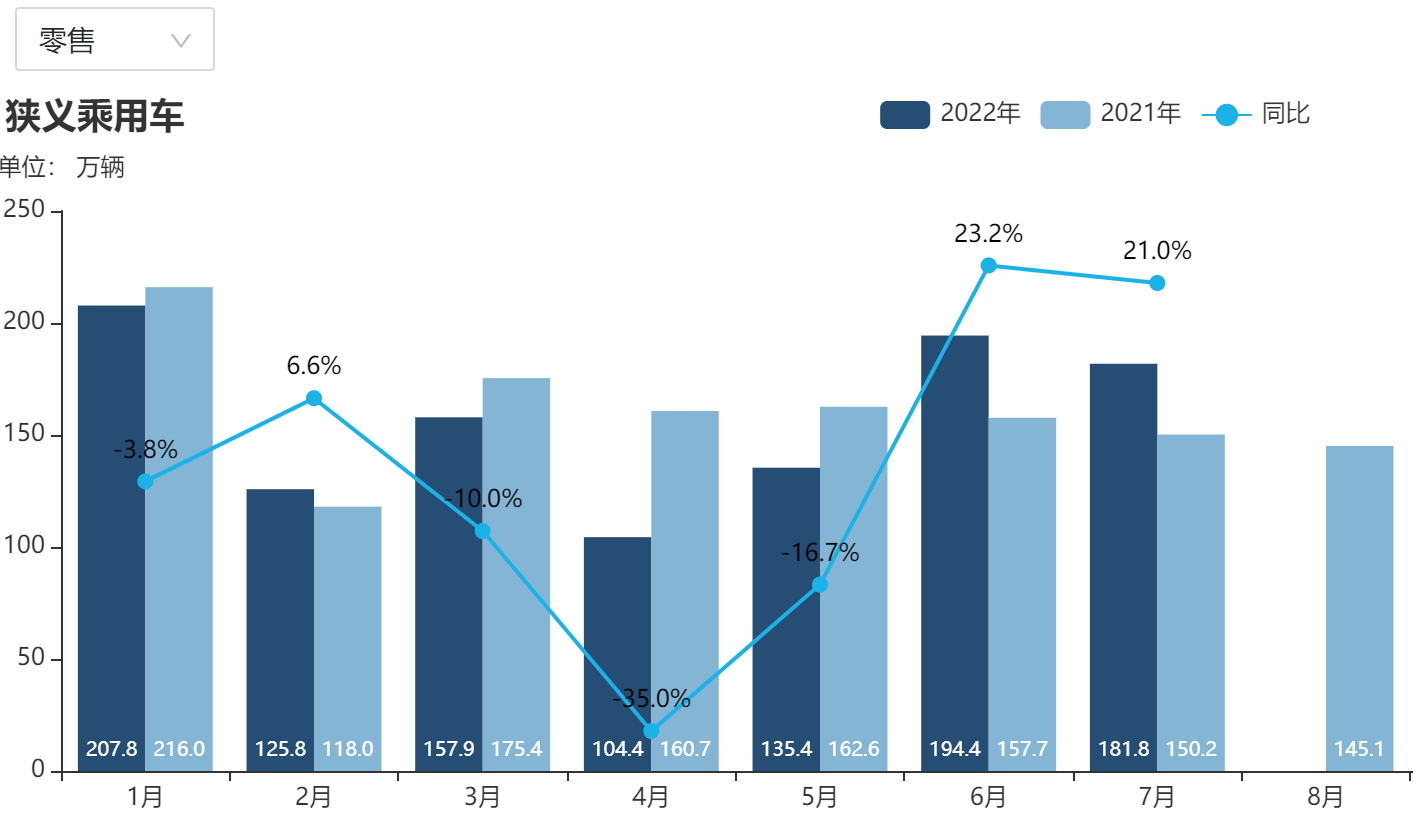 根据乘联会预计,8月,我国狭义乘用车零售数据为188万辆,同比增长29.6%,环比增长3.4%。这个同比数据从前8月里是今年最高,侧面能看到国民消费活动的恢复、向好。遗憾的是9月开始似乎又不消停了……