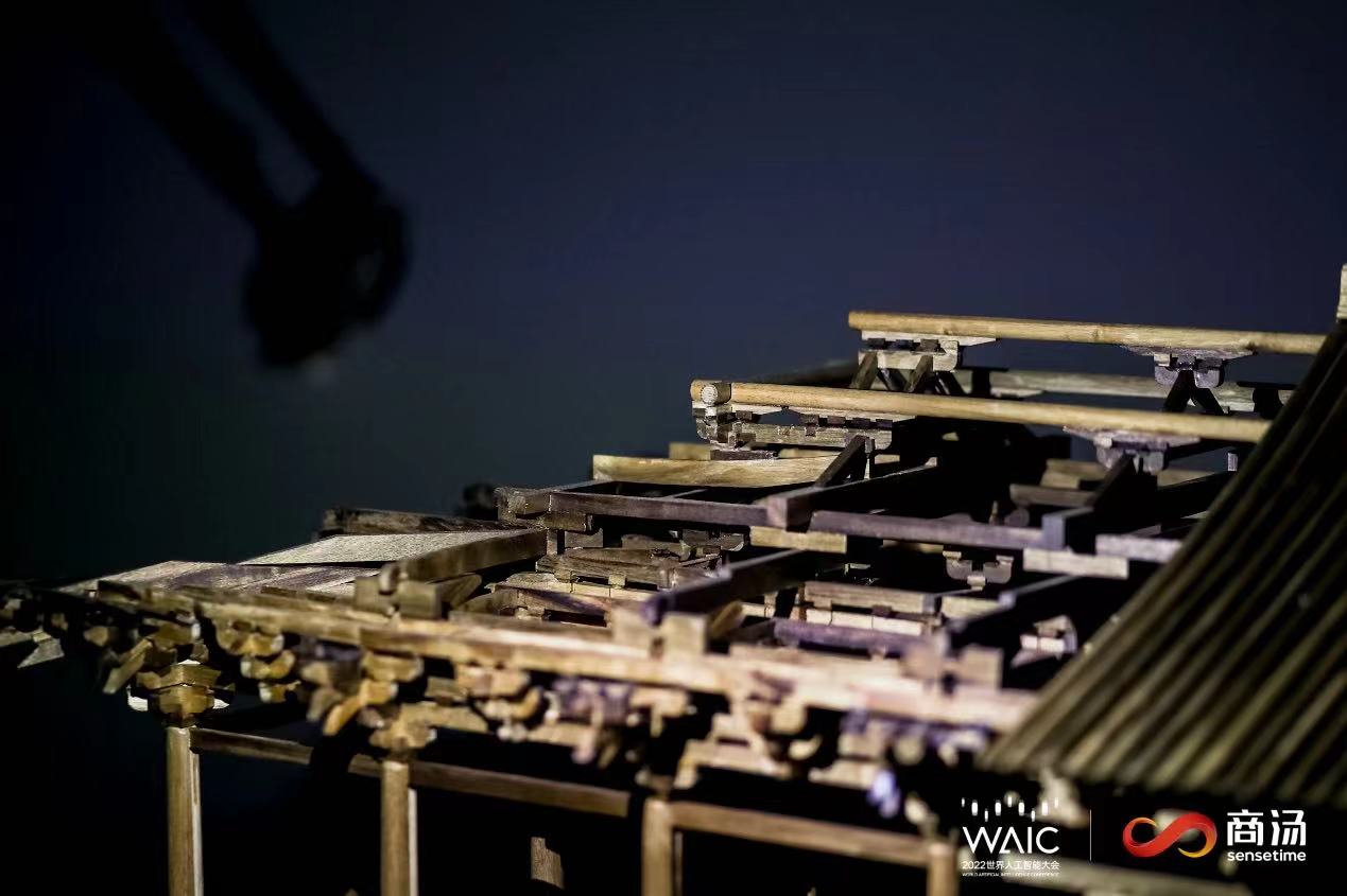 2022年9月,商汤在世界人工智能大会(WAIC)期间通过AI重建与数字孪生技术,佛光寺东大殿结构进行了高精度还原。此外,商汤 AI技术对梁思成、林徽因的照片进行上色复原,展示了两个人再发现与再探索佛光寺的过程。此外,商汤通过AR叠加对刻字、照片等史料进行复原,进一步展现了这个建筑。