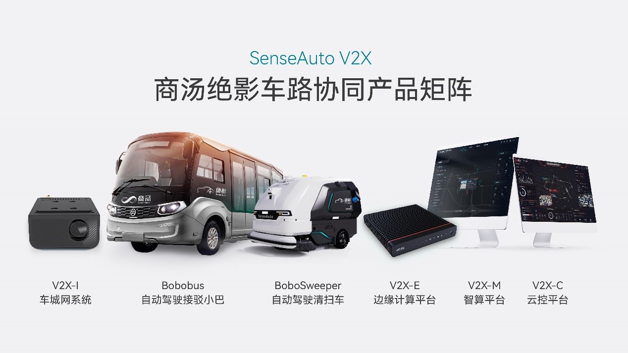 在车端,除了丰富的SenseAuto RoboX系列自动驾驶车辆矩阵,SenseAuto V2X-I车城网平台亦通过轻量化的算力设备,搭建车城网移动感知源IoT平台,打造移动的城市之眼;在路侧,V2X-E智能路侧产品可实现上帝视角的全局感知,为单车补盲;在云端,V2X-M 智算平台可对数据进行汇聚和计算,并通过V2X-C云控平台进行车辆云端控制,使单车获得全局下的最优决策。