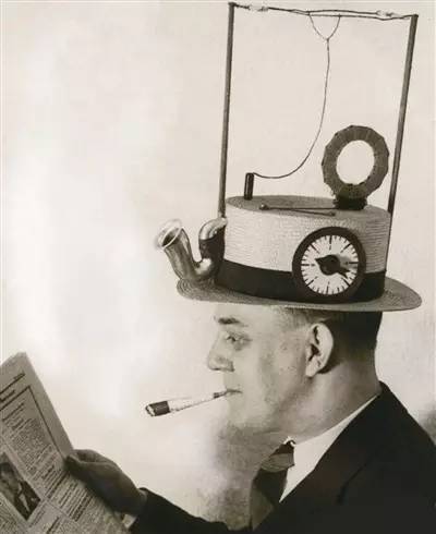 收音机帽子(美国,1931年) 便携式收音机,固定在一个草帽上。
