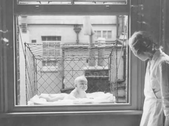 窗台婴儿笼(英国),让宝贝们轻松享受户外生活(太可怕了)。