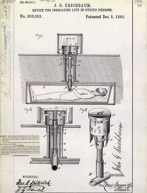 求生棺材,为了防止有人被误认死亡而活埋儿发明,如果你醒来发现自己被困在棺材里了,可以操控棺材内的装置,一个表盘会伸出地面示意“这里还有人活着”(细思极恐)。
