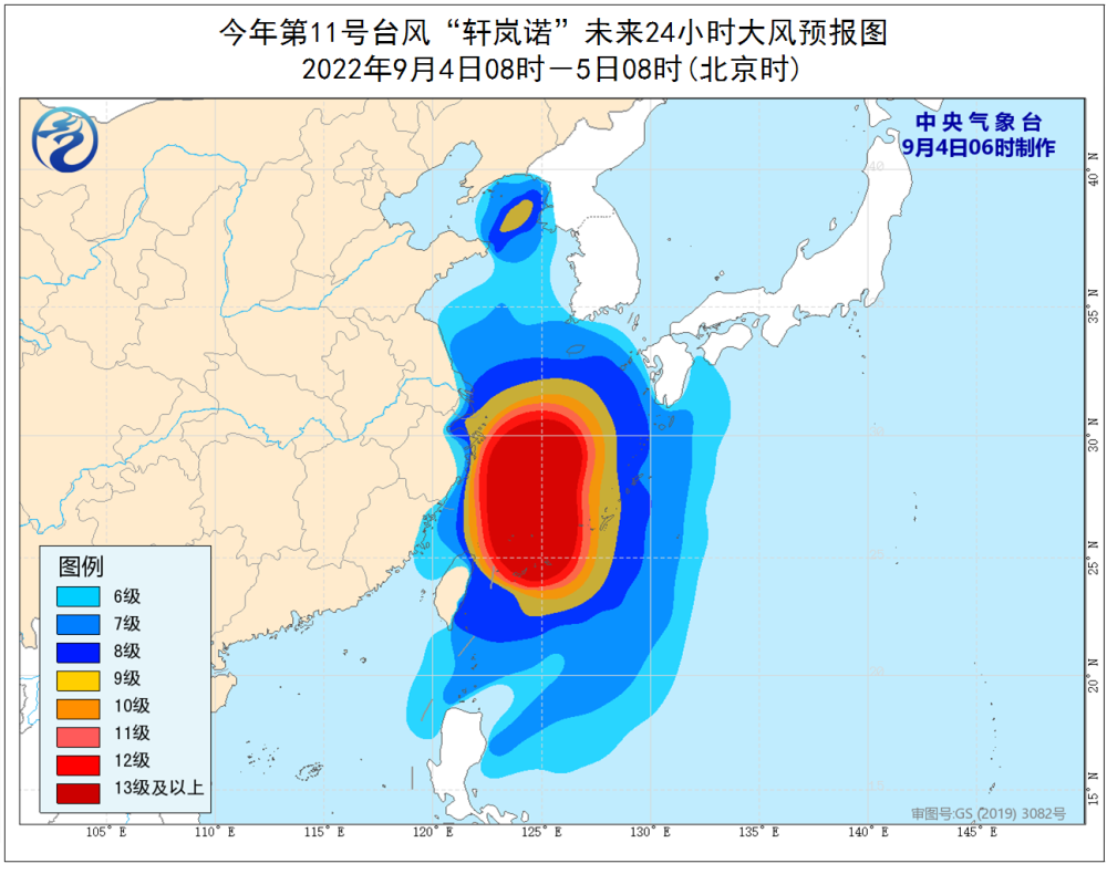 受其影响,我国华东沿海地区将出现较大的风雨影响,预计未来三天(4日至6日),台湾以东洋面、东海、钓鱼岛附近海域、长江口、杭州湾、浙江沿海、上海沿海、江苏东南部沿海将有9~12级大风,“轩岚诺”中心经过的附近海面风力有13~16级,阵风可达17级以上。