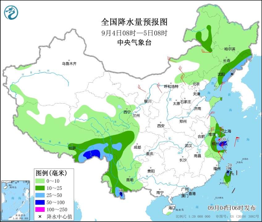 降雨方面,今天(4日),台湾岛、浙江东北部、上海等地有大到暴雨,局地大暴雨。中央气象台今晨继续发布台风黄色预警。